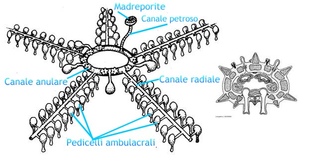 Le stelle marine appartengono infatti al phylum degli echinodermi. Sono organismi invertebrati dotati di un sistema acquifero, costituito da un anello periesofageo e cinque canali radiali che si dipartono dall’anello, seguendo l’andamento delle braccia. Ciascun canale possiede numerosi piccoli pedicelli ambulacrali, che prendono contatto con il substrato e consentono la deambulazione dell’animale. Ogni pedicello si allarga a formare una piccola ampolla, mentre all’estremità termina con una ventosa. L’acqua entra a livello del madreporite, una piastra forata posta sulla faccia aborale dell’animale (quella dorsale, opposta al substrato); una volta entrata, l’acqua passa attraverso il canale petroso, tratto che congiunge il madreporite ai canali radiali, e raggiunge dunque i pedicelli ambulacrali. Dato che l’acqua viene forzata dentro e fuori dai pedicelli, ciascuno di questi aderisce al substrato quando è gonfio d’acqua, mentre se ne distacca quando si contrae. È proprio l’acqua che permette a questo complesso sistema di operare correttamente, consentendo non soltanto la locomozione dell’animale, ma anche altre importantissime funzioni, quali escrezione ed osmoregolazione. Di conseguenza, un’esposizione all’ambiente subaereo, anche di pochi secondi, può risultare fatale per questi animali.