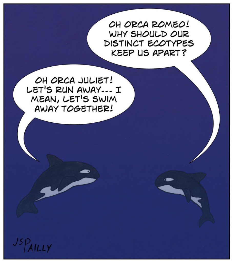 In quest’ottica, le prede dei due diversi ecotipi avrebbero plasmato, nel corso dell’evoluzione, il comportamento vocale (e quindi sociale) degli ecotipi stessi.