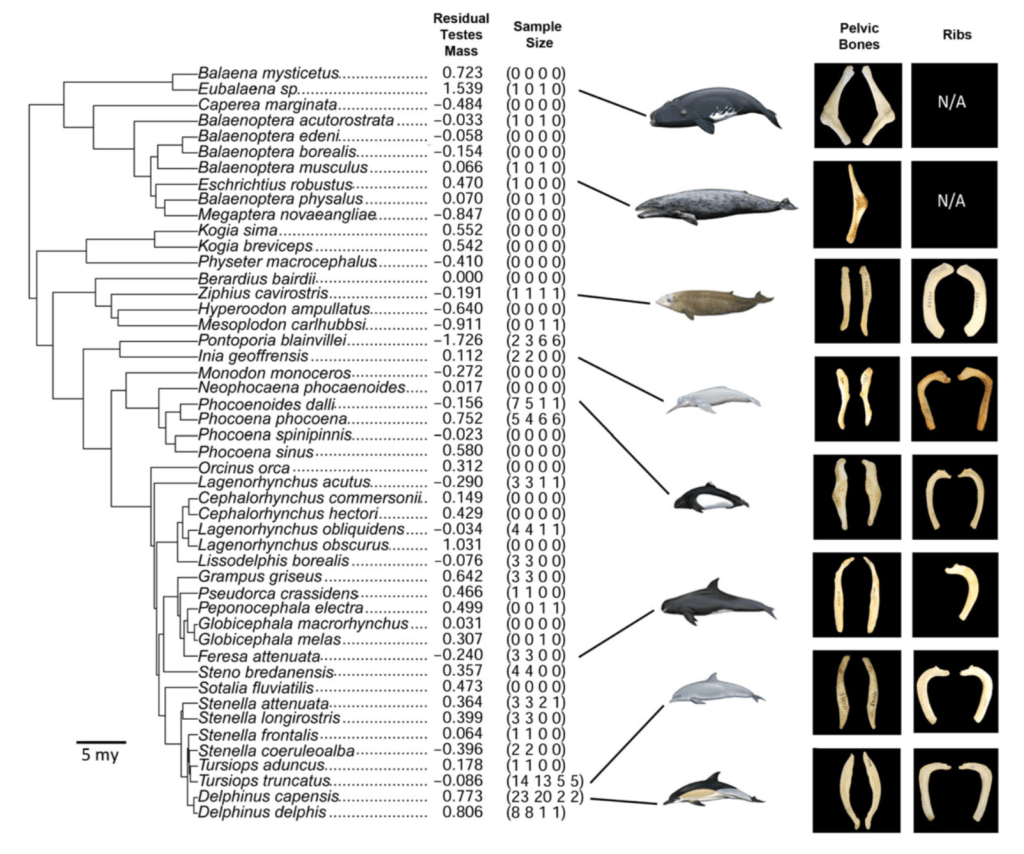 Questo studio mette in evidenza come queste ossa sembrino essere fondamentali per sostenere i genitali maschili durante l’accoppiamento. I muscoli ischiocavernosi infatti, ancorati alle ossa pelviche, sono di rilevante importanza per controllare i movimenti del pene, soprattutto nei cetacei. Nelle specie a forte competizione sessuale, le femmine mostrano spesso un comportamento elusivo, che porterebbe a selezionare i maschi più abili nel contrastare questa strategia di evitamento. In queste specie di cetacei infatti, le femmine avrebbero la tendenza a ruotare a pancia in sù, per evitare l’accoppiamento coi maschi. Pertanto, un miglior controllo nei movimenti dei genitali, aiuterebbe i maschi a superare questo ostacolo alla riproduzione.