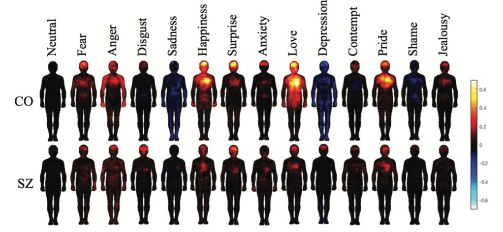 - Torregrossa L.J., Snodgress M.A., Hong S.J., Nichols H.S., Glerean E., Nummenmaa L., Park S. (2018) Anomalous Bodily Maps of Emotions in Schizophrenia. Schizophrenia Bulletin 45(5):1060–1067.